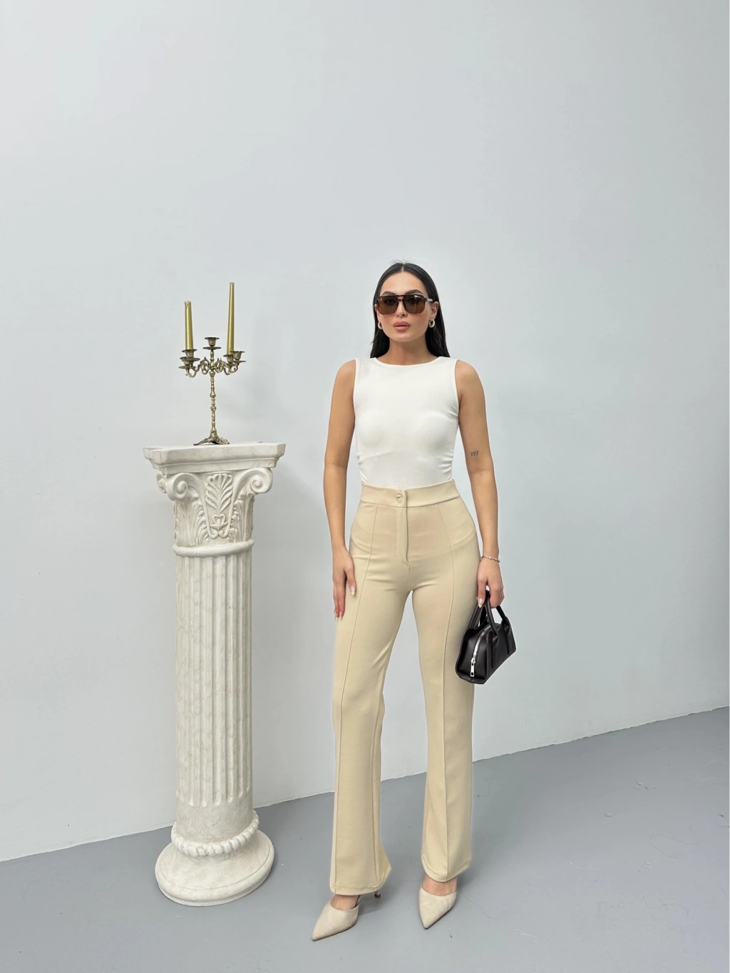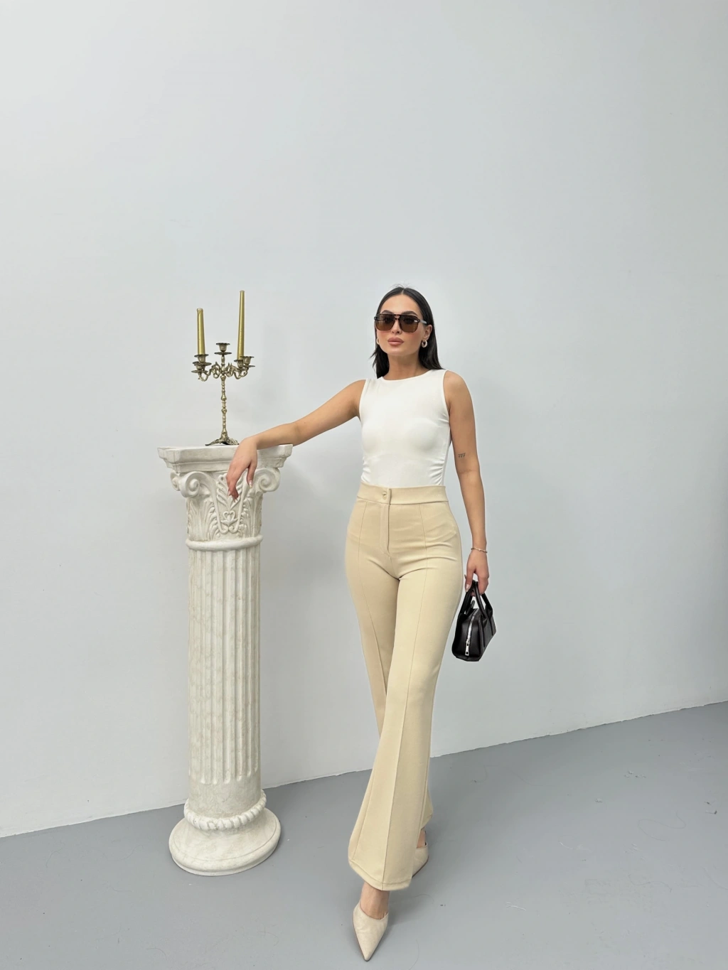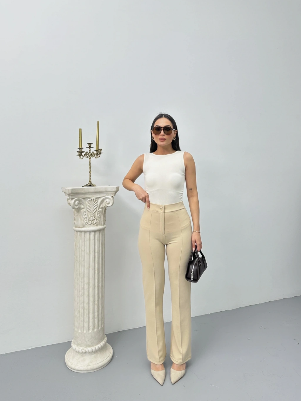 • Düğmeli Palazzo pantolon bej p170091