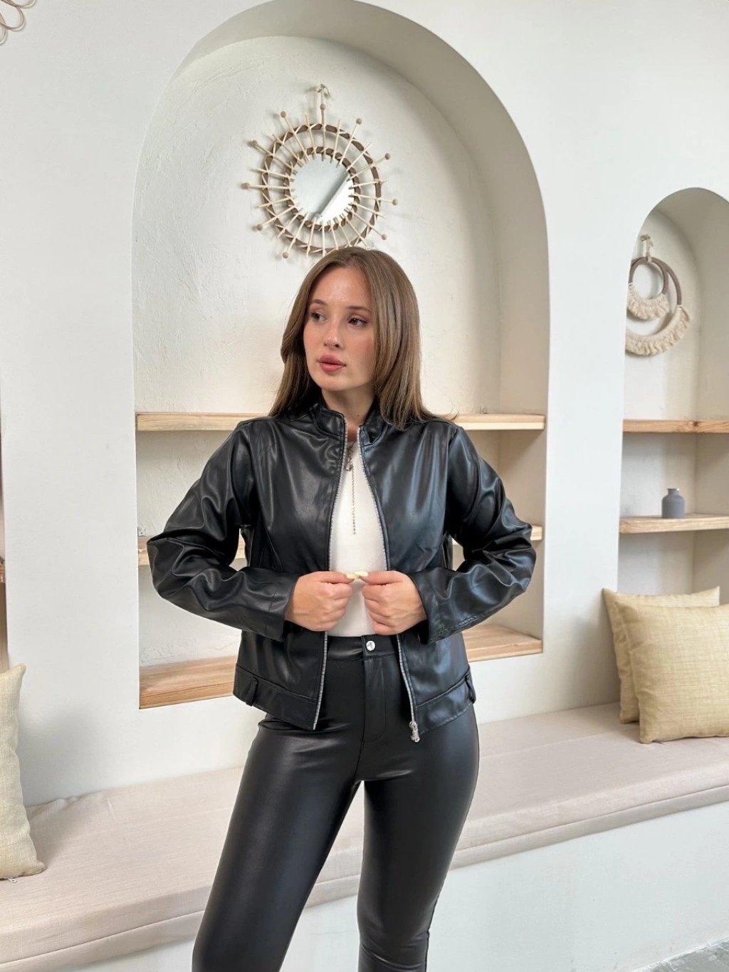 • Şık ve modern tasarımıyla dikkat çeken mevsimlik deri ceket, gardırobunuzun vazgeçilmezi olmaya aday.