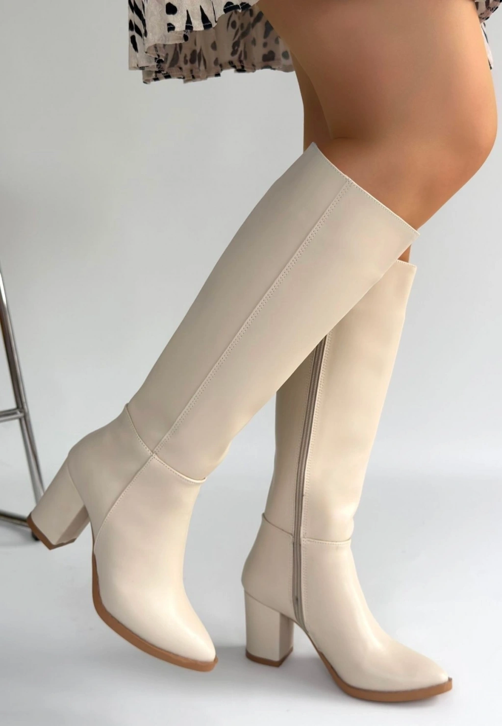 Detay: Topuklu Diz Altı Yandan Fermuarlı Çizme