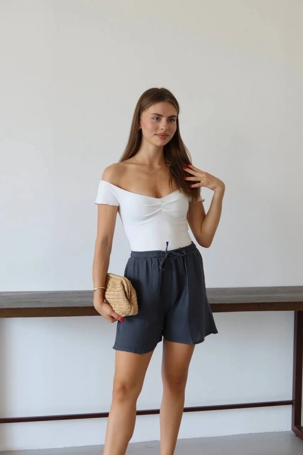 Yaz aylarının vazgeçilmezi şortların şıklıkla buluştuğu Müsli kumaş şort bağcıklı antrasit pt, gardırobunuzun favori parçası olmaya aday!