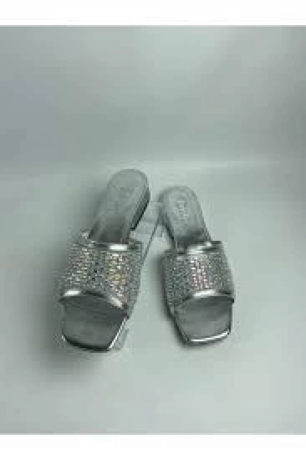 • Ortu Gümüş Cilt İşlemeli Terlik