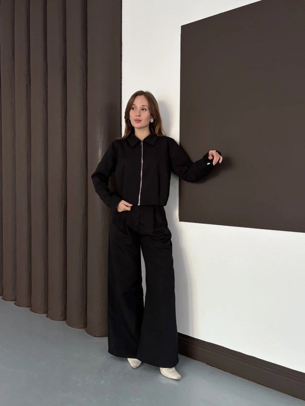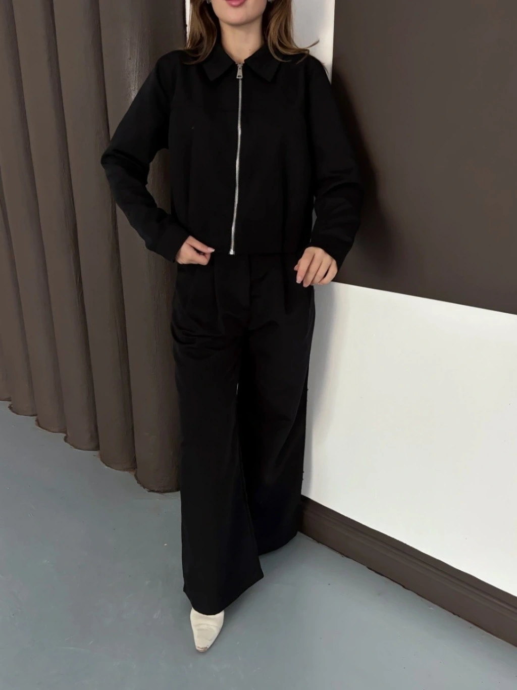 Trenç Takım Alt Üst Siyah Ons, şıklık ve rahatlığı bir arada sunar. Hem günlük kullanıma hem de özel günlerde tercih edebileceğiniz şık bir takım modelidir.